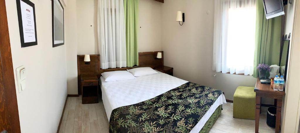 Objekt Mitos Pansion nalazi se u gradu 'Bozcaada' te sadrži vrt, bar i besplatan WiFi u cijelom objektu. Određene sobe u objektu nude balkon s pogledom na grad. U objektu Mitos Objekt svaka soba sadrži ormar. Uz privatnu kupaonicu s tušem i besplatnim toaletnim priborom, sobe za goste u objektu Mitos Hotelska Struktura imaju TV ravnog ekrana i klima-uređaj, a neke sobe nude i terasu. U objektu Mitos Hotelski Kompleks svaka soba ima posteljinu i ručnike. Švedski stol dostupan je u objektu Mitos Rezidencija. Zračna luka Canakkale udaljena je 62 km od objekta.